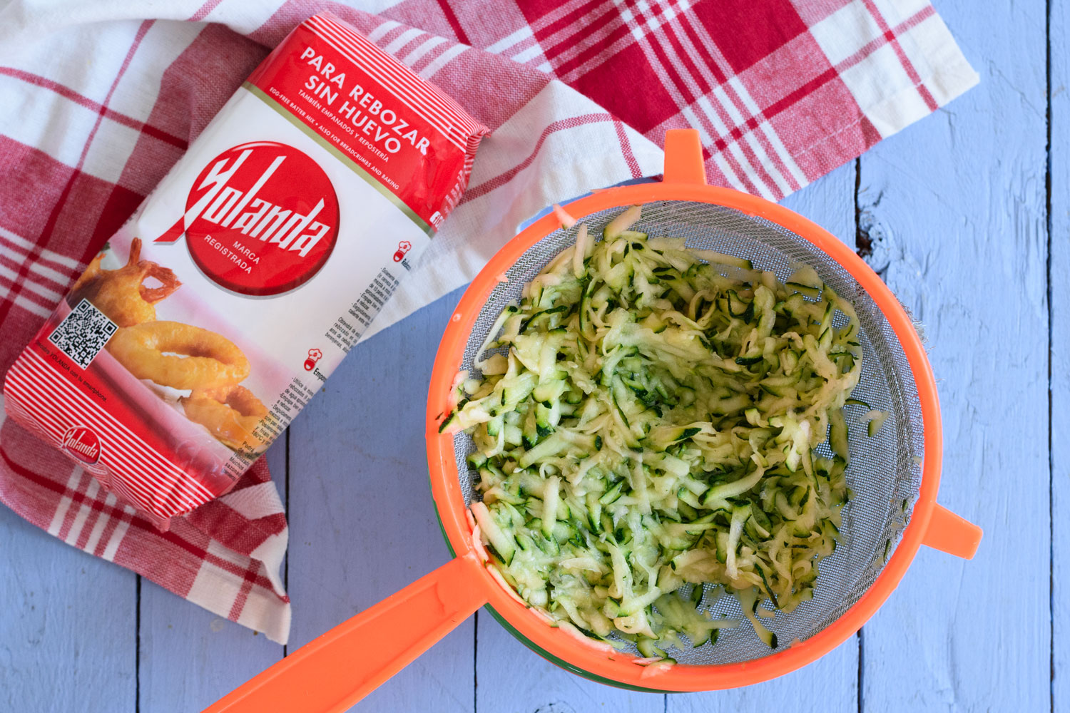 Rallamos el calabacín y lo ponemos a escurrir durante 10 minutos.